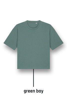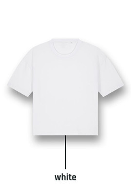 Ce T-shirt 100% coton biologique possède une coupe légèrement oversize et légèrement crop.